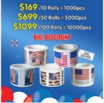 Highly Recommended: $149 for 10 Rolls(1000pcs) – 2017/2018/2019/2022 Flag